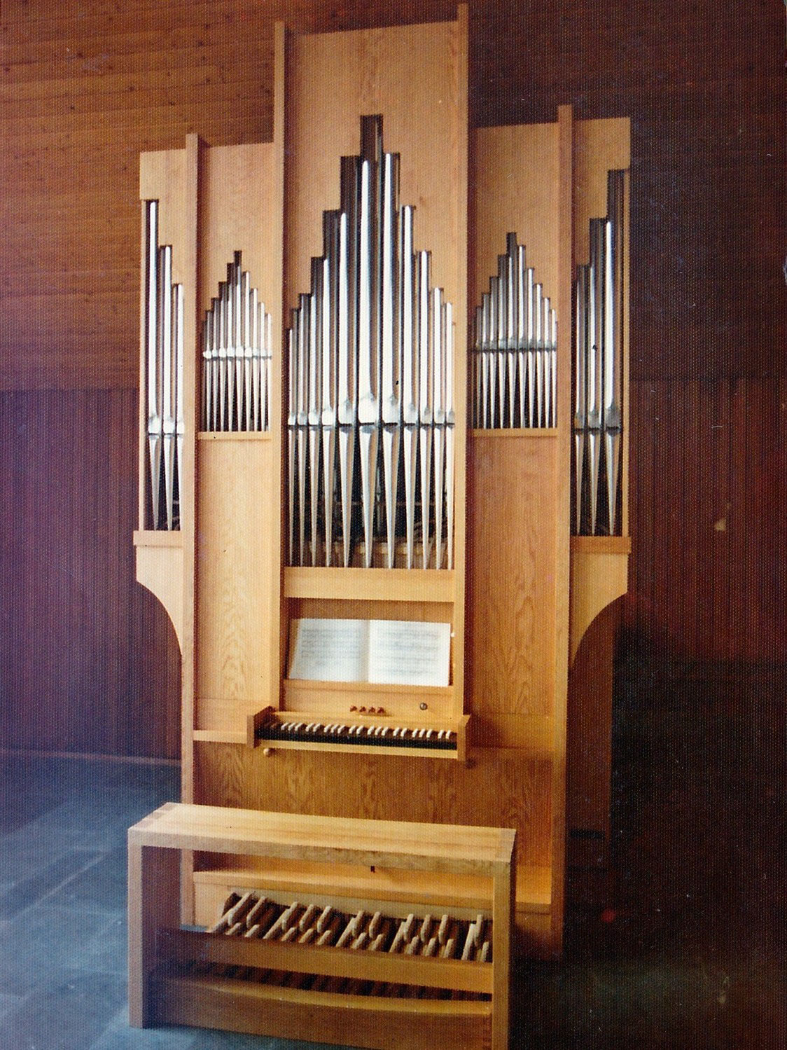 Weimar/Lahn-Wenkbach | Kath. St. Jakobus 1980 | Neubau Disposition Manual C–f³Pedal C–d¹Bordun 8′Subbaß 16′Principal 4′PedalkoppelRohrflöte 4′Quinte 3′Octav 2′